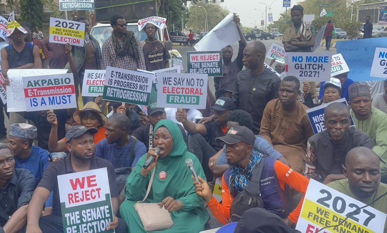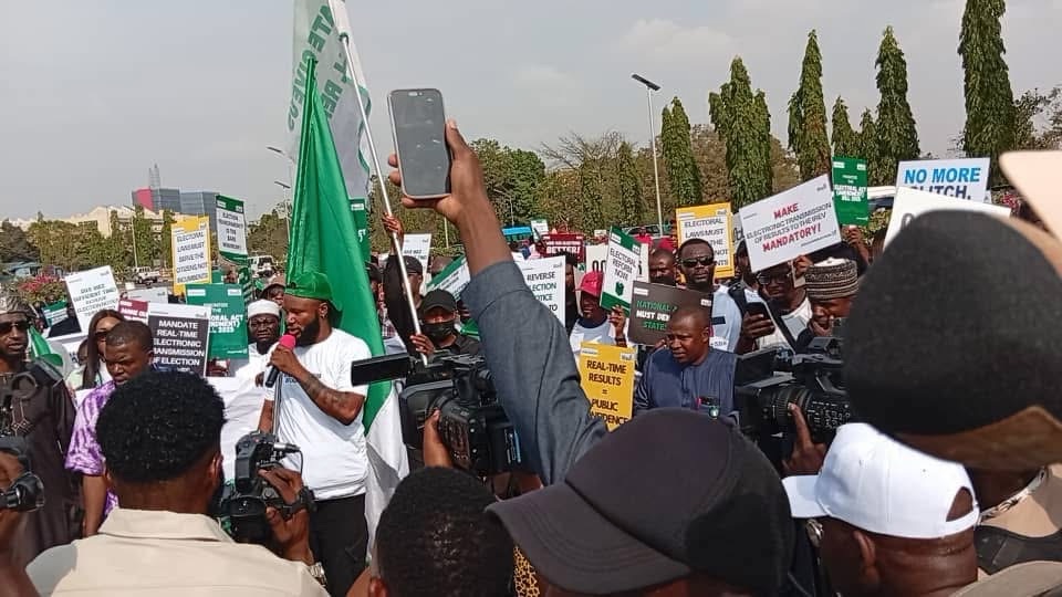 The protest follows the Senate’s stance on the electronic transmission of election outcomes. On Wednesday, the Senate reportedly rejected a proposed amendment to Clause 60, sub-section 3 of the Electoral Amendment Bill, which would have made the electronic transmission of results mandatory.