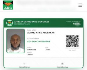 Adamu Abubakar, son of former Vice President Atiku Abubakar, has defected to the African Democratic Congress (ADC).
