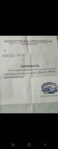 “For negligence and defaulting in duty, the authority is hereby suspending you from duty for a period of three months,” the letter read. The notice was issued by the Office of the Education Secretary in Dandi Local Government Area.