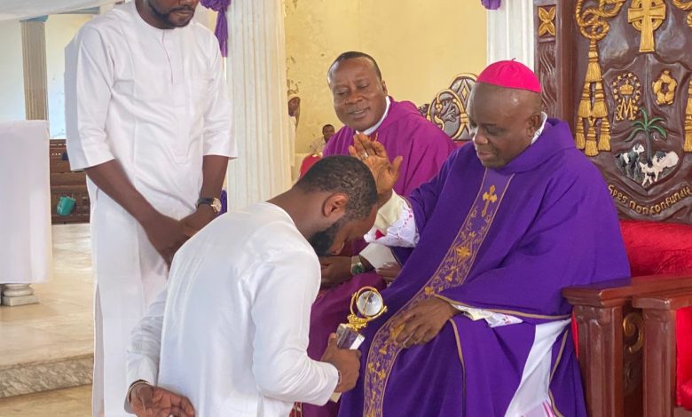 Seyi Tinubu, the son of President, Bola Tinubu has received a special Episcopal blessing from the Catholic Bishop of Maria Mater Ecclesia, Ahiara Diocese, Simon Okezuo Iweobi.