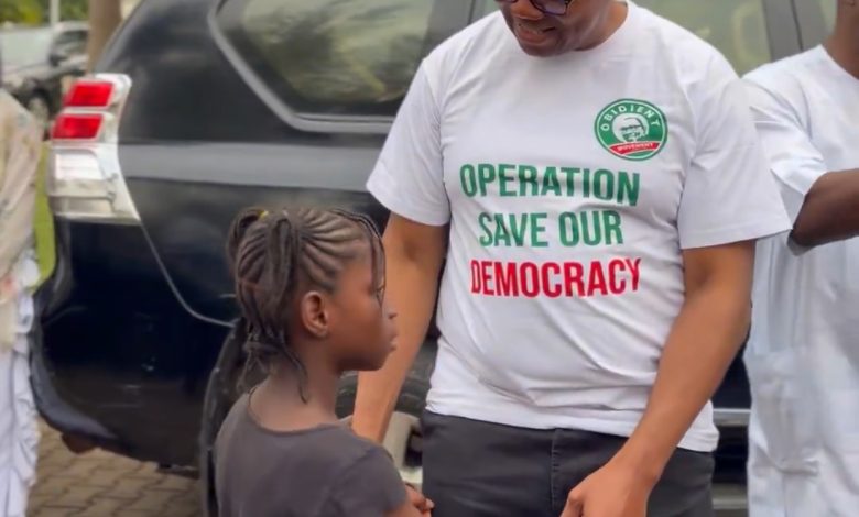 In the first video which was shared by Obi’s official photographer, Esther Umoh, the former Anambra State governor was captured having an inaudible conversation with a little girl.