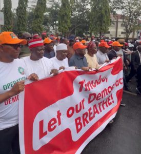 Tambuwal wrote on X, “Alongside other leaders of the ADC, I am participating in a peaceful protest against the perceived partisanship of the electoral umpire.