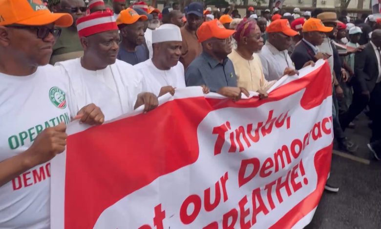 A former governor of Sokoto State, Aminu Tambuwal has joined leaders of the coalition party, the African Democratic Congress (ADC) in the ongoing #OperationSaveOurDemocracy protest in Abuja.