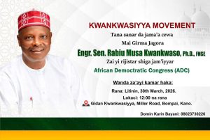 According to the announcement, Kwankwaso is expected to formally register with the ADC on Monday, March 30, 2026.