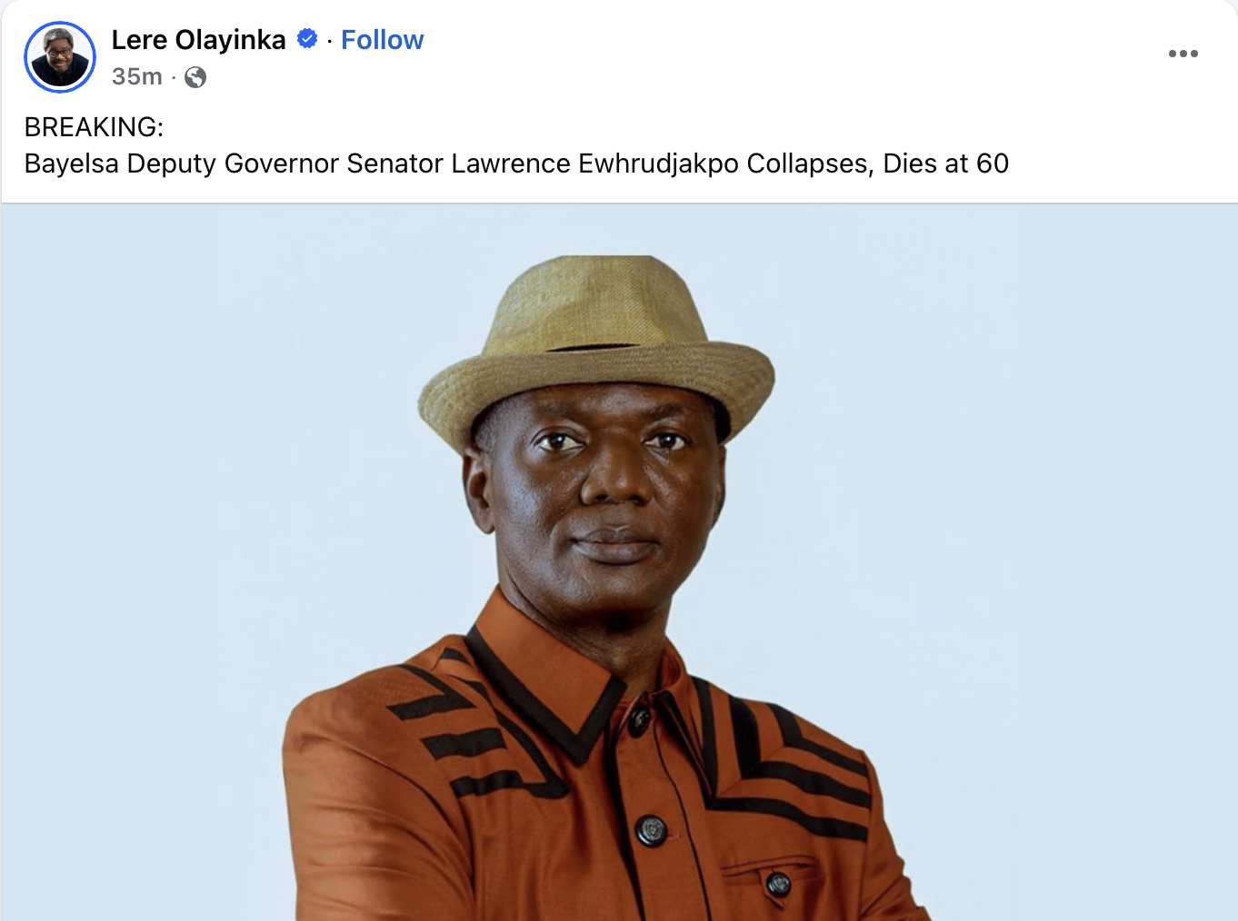 Senator Ewhrudjakpo, aged 60, had served as Deputy Governor since February 2020 and previously represented Bayelsa West in the Nigerian Senate. Details surrounding the circumstances of his death are still emerging, and the Bayelsa State Government is expected to release an official statement soon.