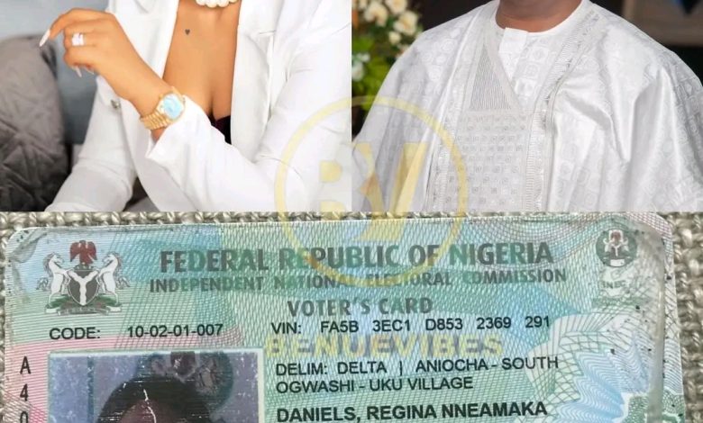Below is the picture evidence of alleged Regina Daniel’s voter’s card proof by Senator Ned Nwoko.