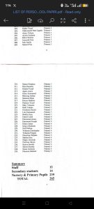 On Monday, the diocese published the names of 239 students from nursery and primary schools, 14 students from secondary schools, and 12 teachers still held by the abductors, bringing the total to 265 individuals.