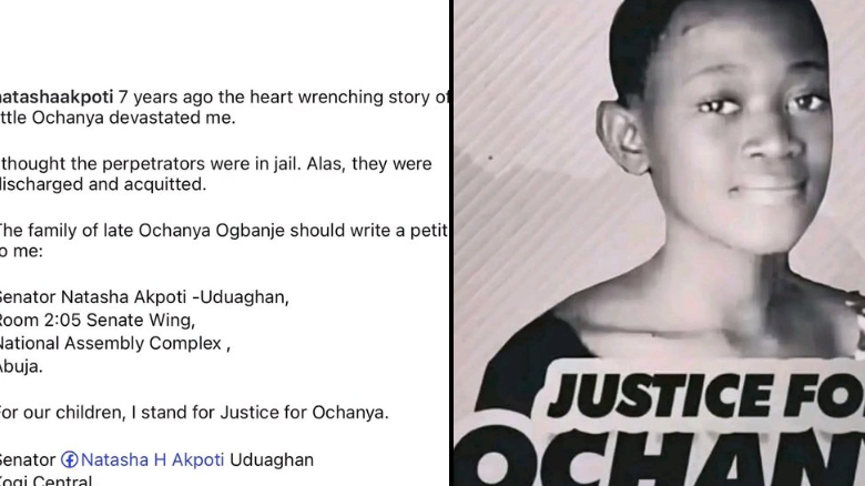 Senator Natasha Akpoti-Uduaghan has vowed to pursue justice for 13-year-old rape victim Ochanya Elizabeth Ogbanje, whose death led to a national outcry and #JusticeForOchanya protests.